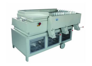 該機(jī)利用谷糙混合物中稻谷和糙米比重的差異使稻谷“上浮”糙米“下沉”,糙米又籍以雙向傾斜裝置的分離板以及板面魚(yú)鱗凸點(diǎn)的作用